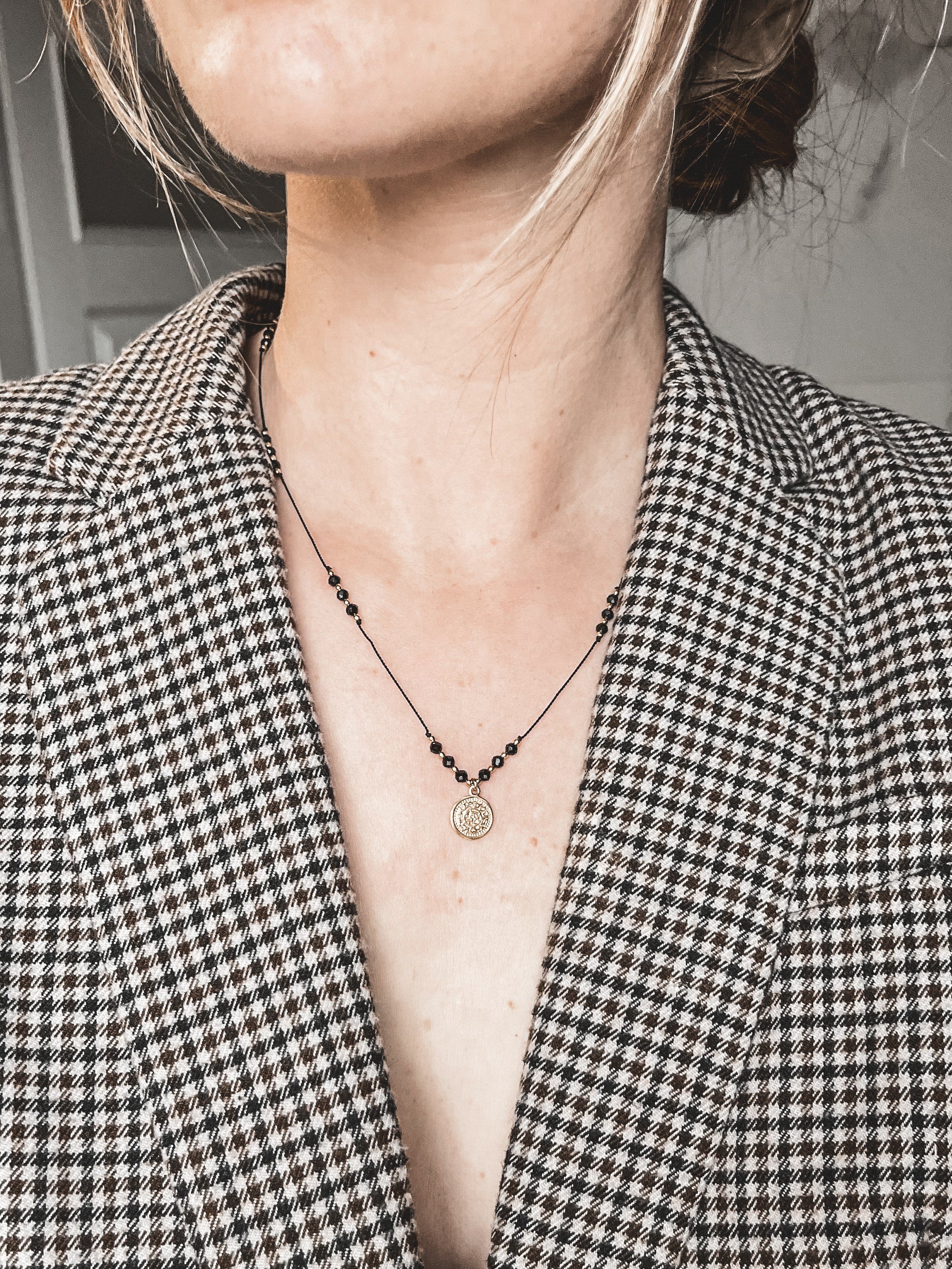 Naszyjnik ma regulowaną długość 45-65 cm.